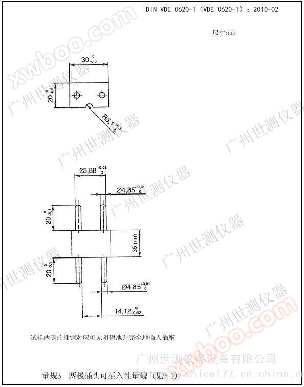 VDE0620 Stecker Stecker Werk Prüfung Werk Anforderungen für die Verwendung von Maßstäben (Werkzeuge):